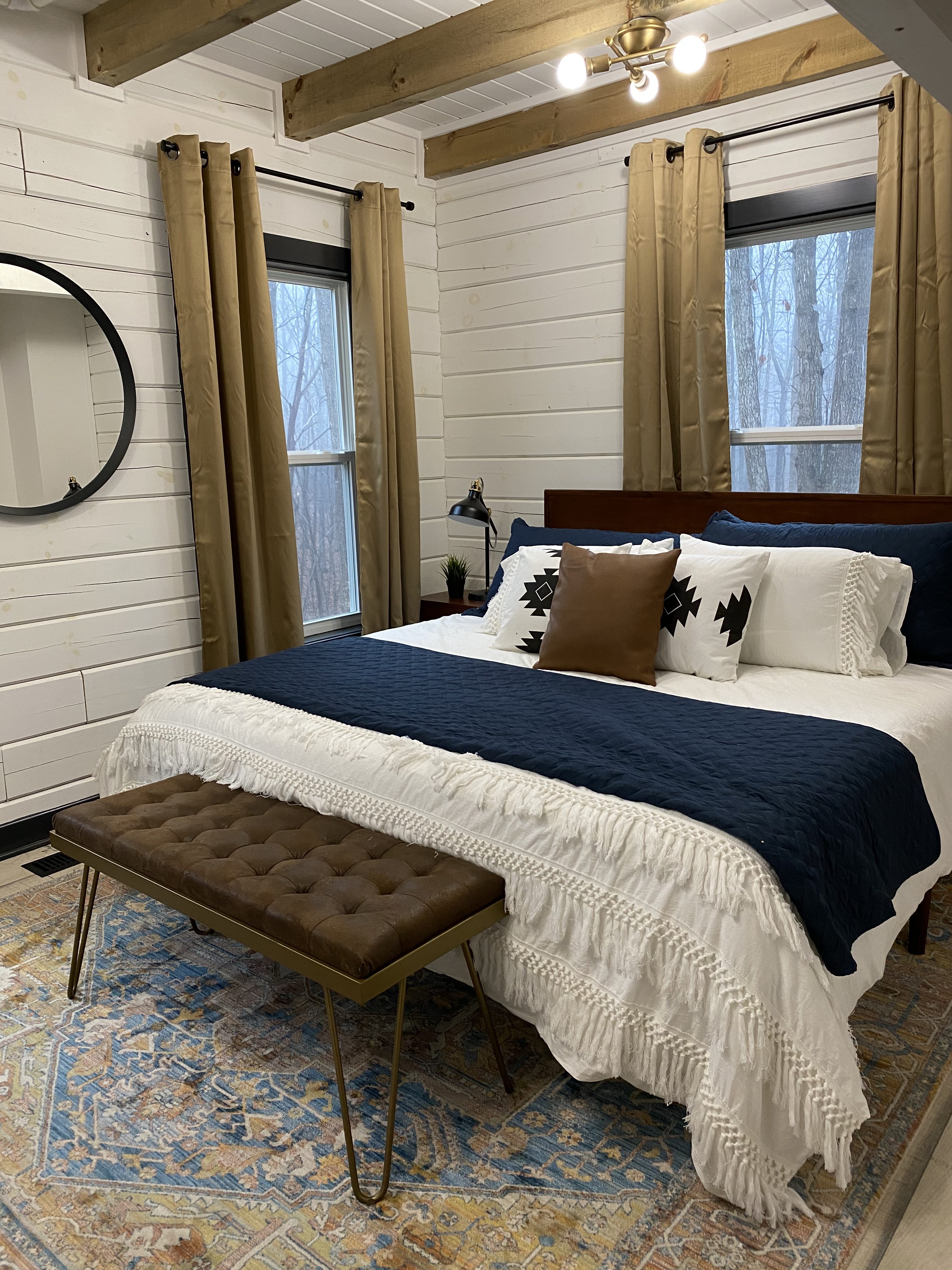 When designing this house, I tried to keep things simple. There are three bedrooms and a loft, and I wanted ample sleeping space. If you follow me at all on social media, you also know that I am as frugal as it comes. I think it is what separates me from a lot of others. I like to hunt for clearance deals, use Facebook Marketplace, and repurpose items all on a small budget. This cabin was no different. I strictly stuck to Wayfair, Target, Amazon, and IKEA for all purchases. It’s amazing to be able to shop an entire house without ever leaving your couch. But before sharing all my sources, I must share with you the companies I was fortunate enough to work with for lighting, hardware, and our kitchen sink.